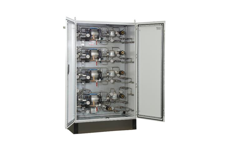 Compleet boosterstation voor testen, vullen of terugwinnen van gassen, geschikt voor werkdrukken tot 2.400 bar.